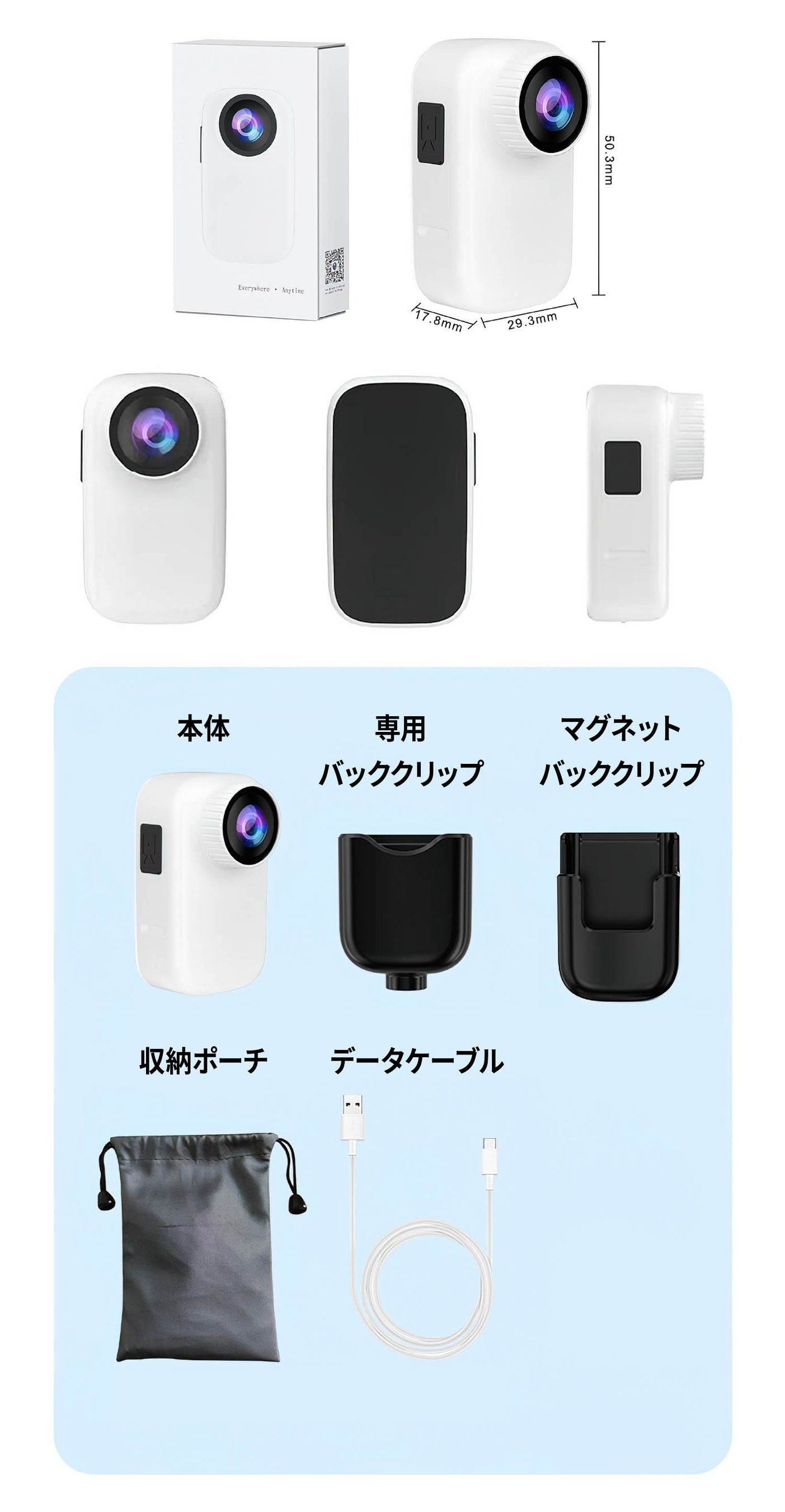【軽量設計/バッククリップで身体に固定/高画質化 PureShot HDR/高音質デュアルマイク/WiFiアクセスポイント/USB Type-C】