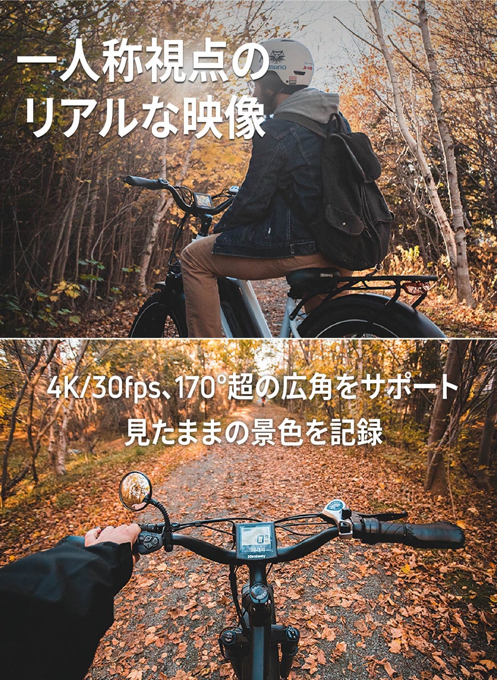 InstaMageは広角レンズを備え、一人称視点の大迫力の動画を簡単に録画できます。