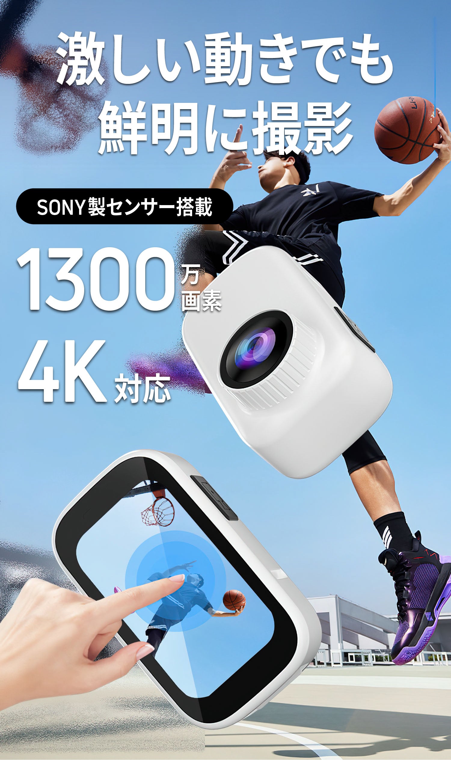 SONY製1300万画素の高性能チップを内蔵し、4Kの高画質で鮮明に記録します。
