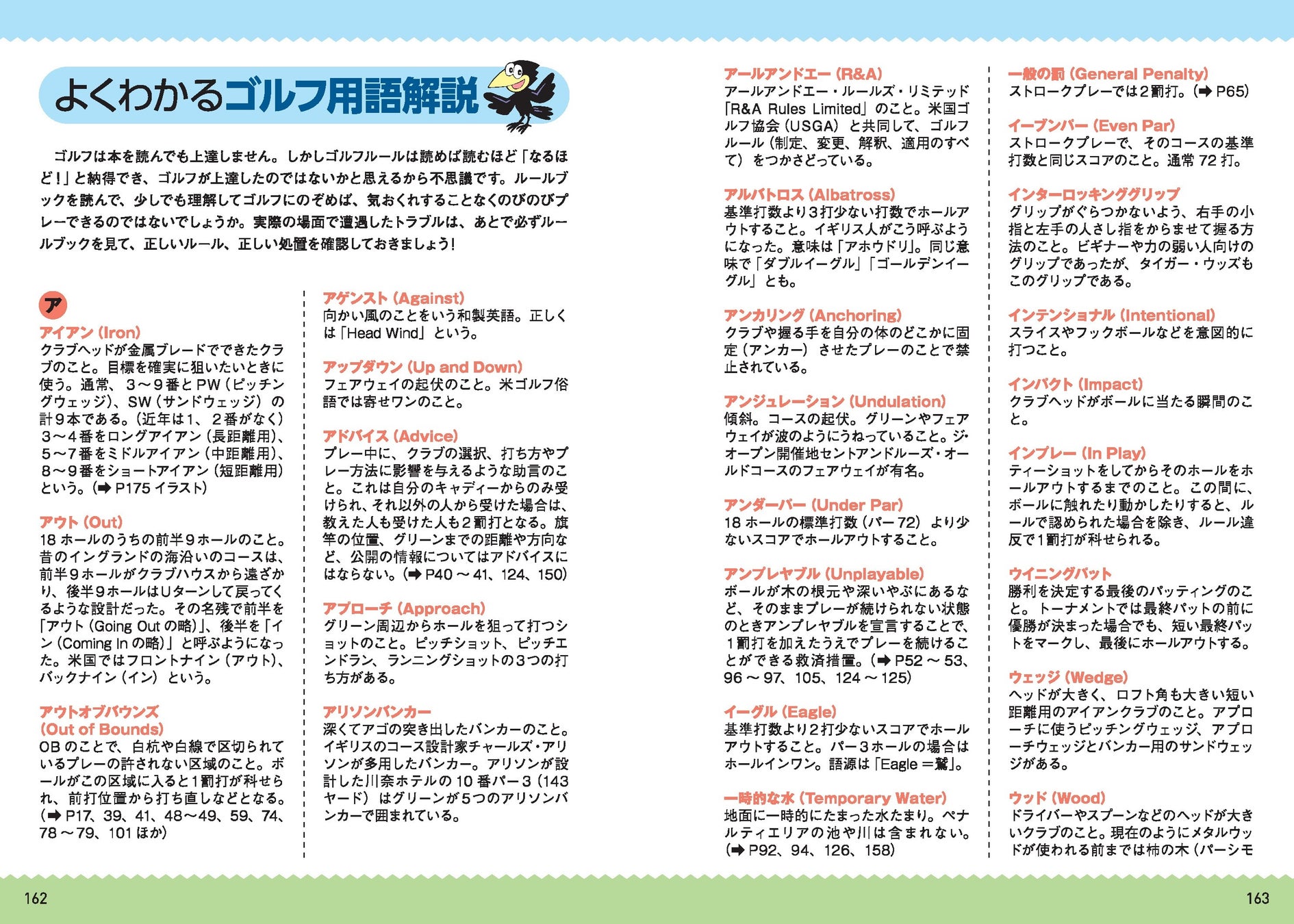 ●ゴルフ用語は巻末にまとまっているので、言葉がわからなければすぐに調べられる