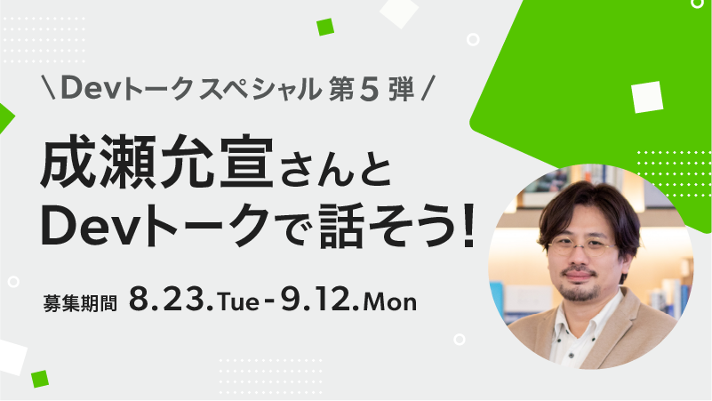 ソフトウェア設計の分野において幅広く活躍されている成瀬允宣氏と話せる!日本最大級のエンジニアコミュニティ「Qiita」が「Devトーク スペシャル第5弾」の募集を開始