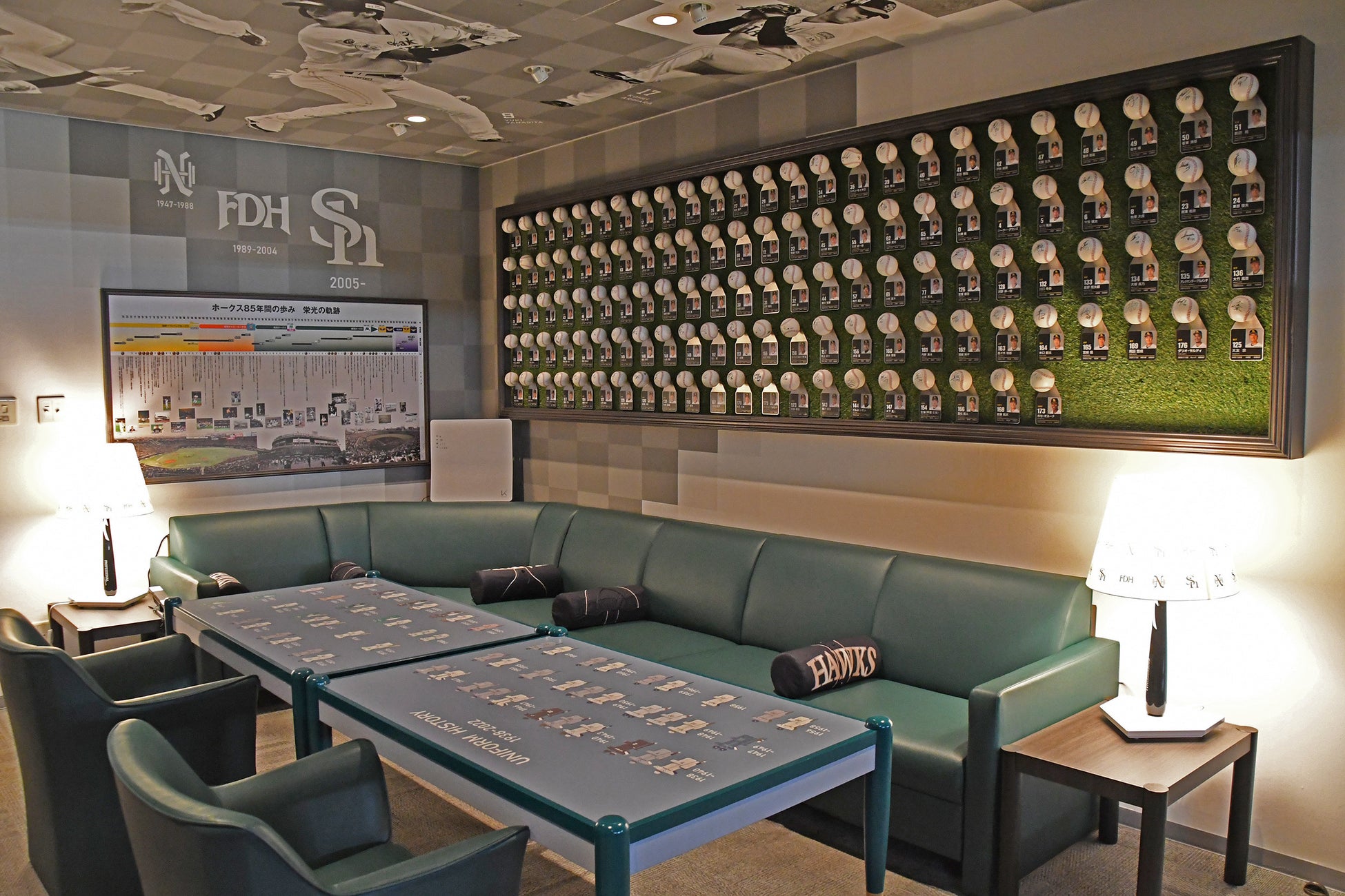 みずほPayPayドーム福岡6階に位置し、個室内には、歴代選手のサイン入りボールや実際に使用した貴重な品々が展示され、福岡ソフトバンクホークスの歴史や選手をより身近に感じられる特別ルーム。
