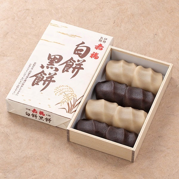 〈赤福〉①赤福餅(12個入) 1,200円、②白餅黑餅(8個入) 1,100円、③餅どら焼き(1個) 350円、④季の羊羹桜(2個入) 500円/1階 北口イベントスペース