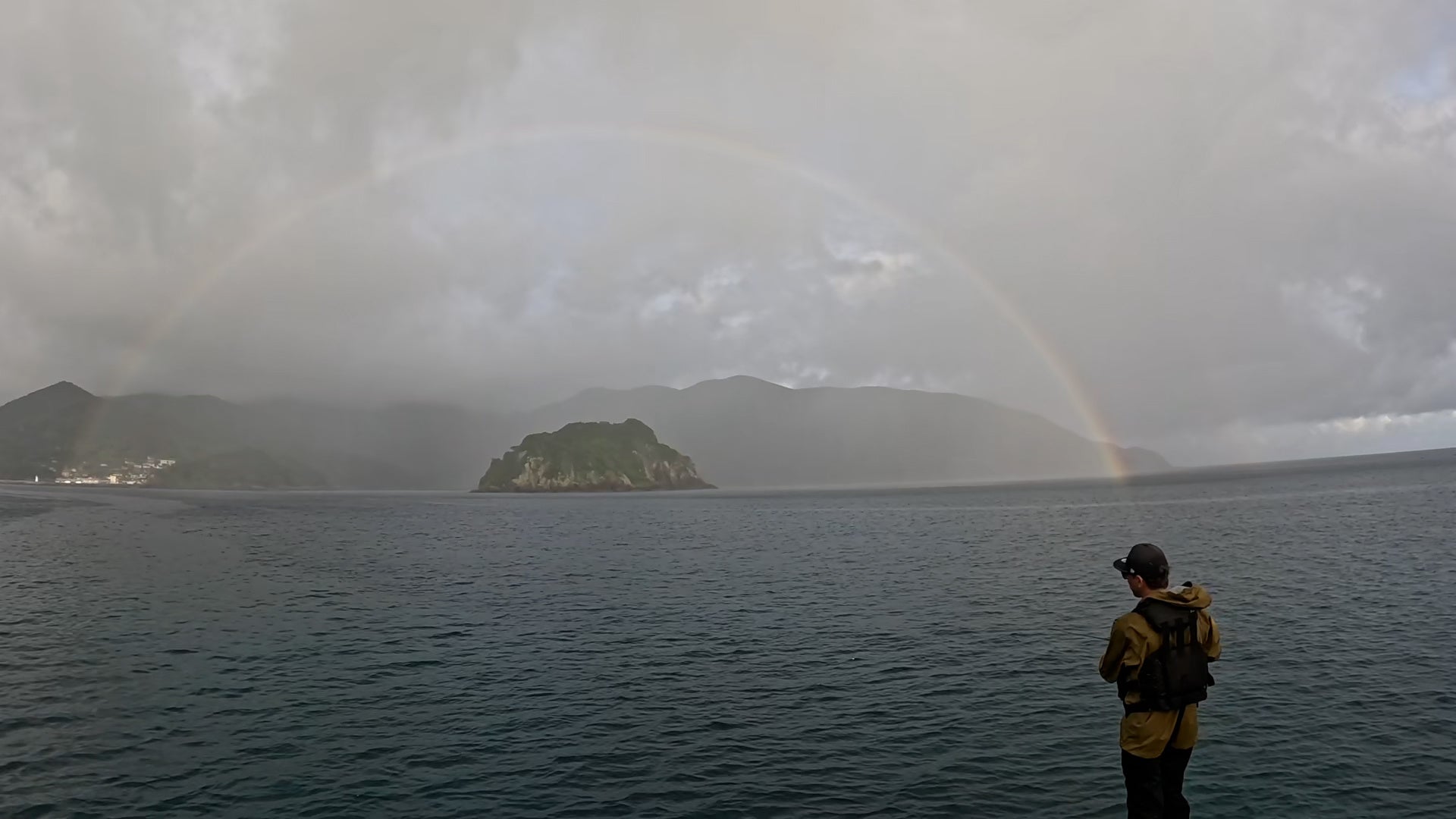 夏のような暑い日差しが照りつける磯の上で、男たちの歓喜の声が響き渡る。