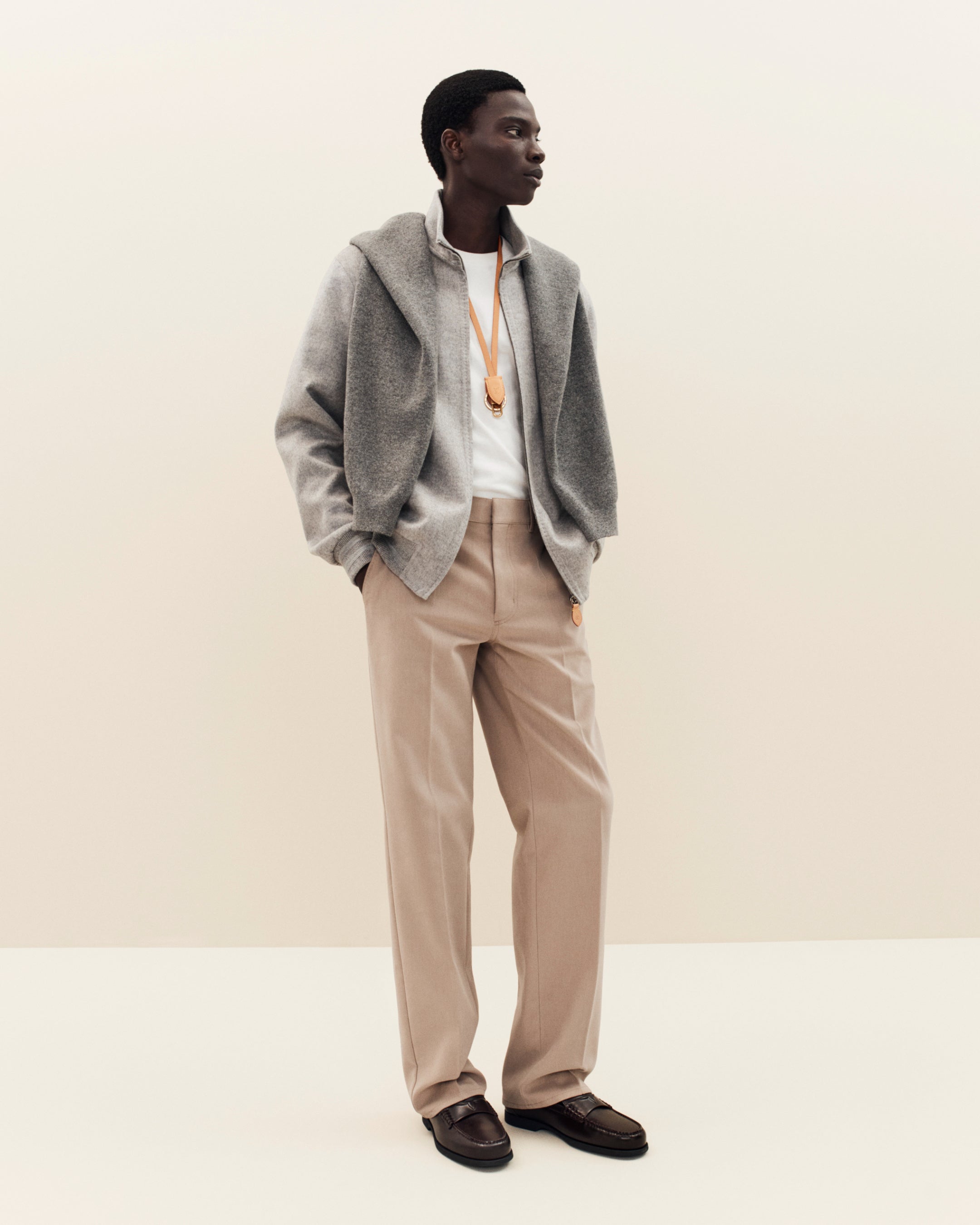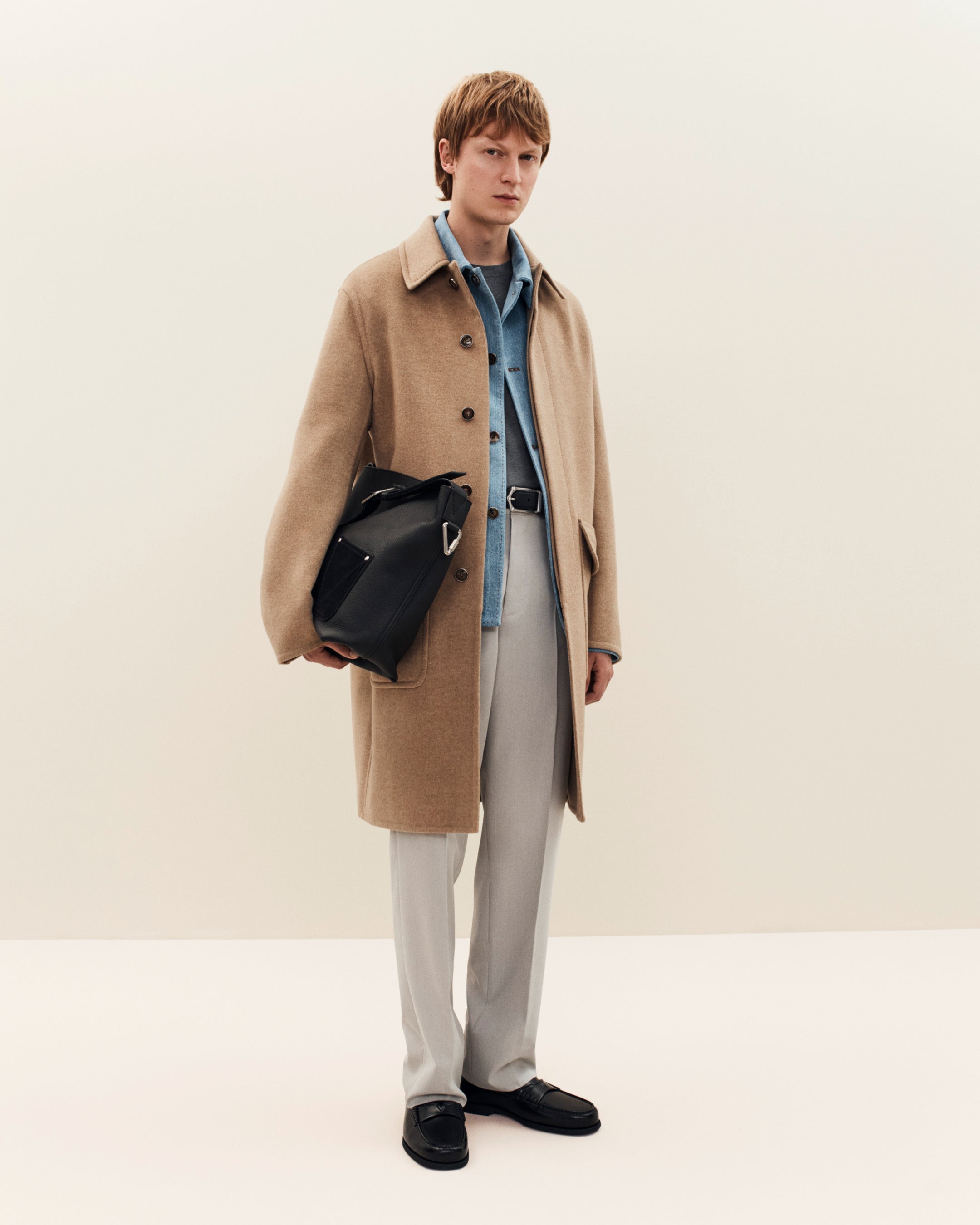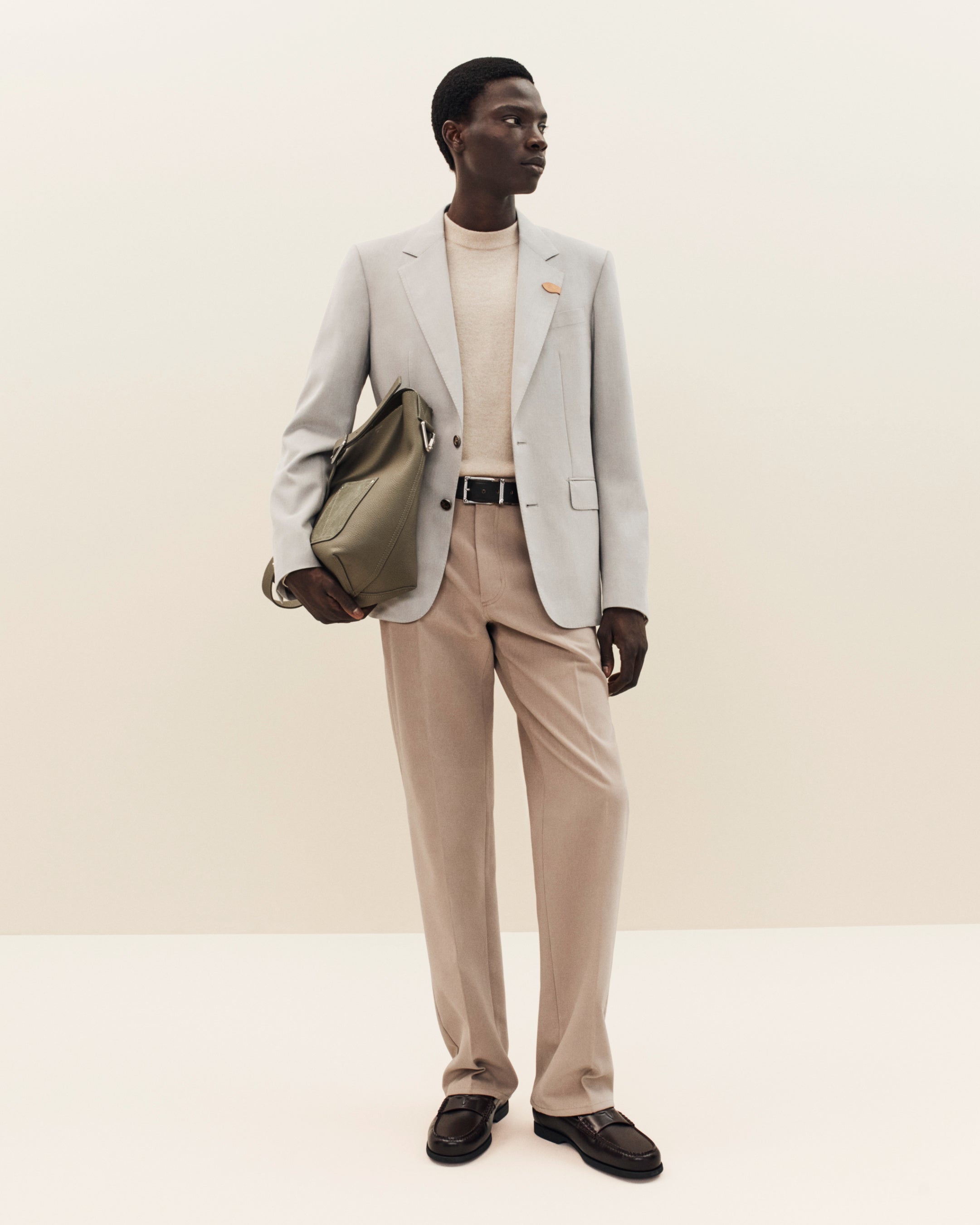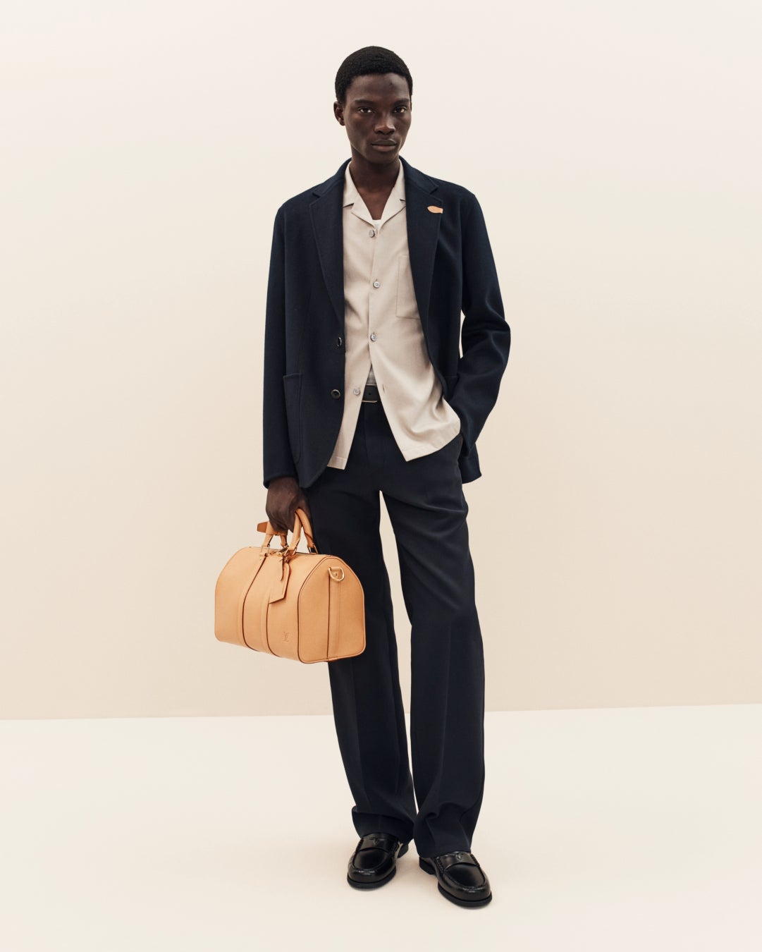 この汎用性の高いワードローブは、伝統的なトランクのように、ルイ·ヴィトンのサヴォアフェール(匠の技)と実用的な精神を融合。昼から夜へとシームレスに対応する、エフォートレスな着こなしを想定したウェアやアクセサリーで表現されています。モダンでカジュアルなシルエットにフォーマルな雰囲気が吹き込まれ、季節をまたぐ気候に適した、控えめでありながら計算された卓越した表現として形になっています。