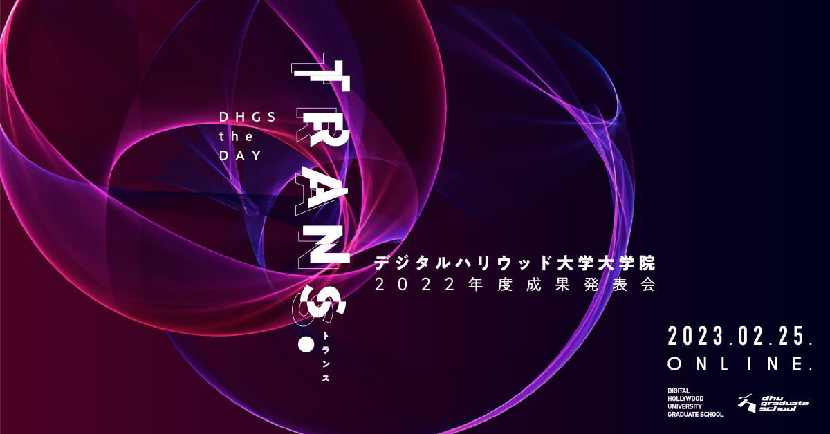 この度、研究成果の発表会、『デジタルハリウッド大学大学院2022年度成果発表会TRANS. DHGS the DAY』を、2023年2月25日(土)にオンライン開催いたします。