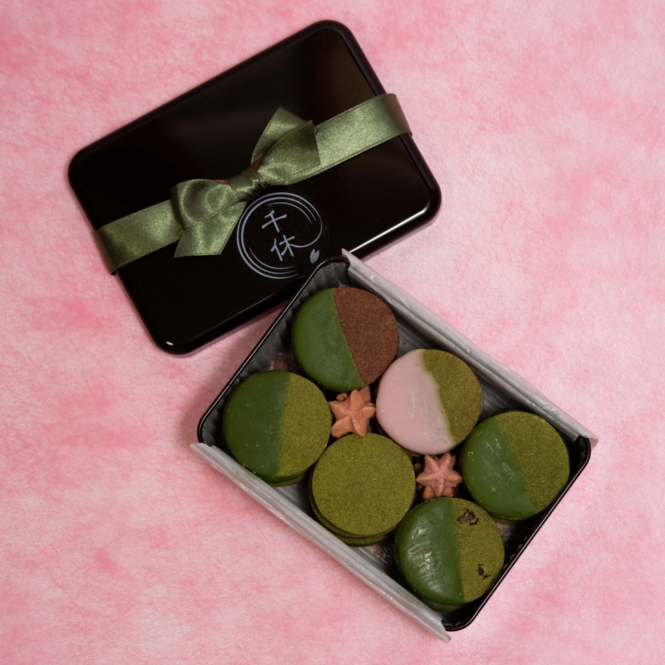 抹茶専門ブランド〈千休〉春香る抹茶チョコレートクッキー缶 3,900円(抹茶クッキー24枚、絞り出し6個)