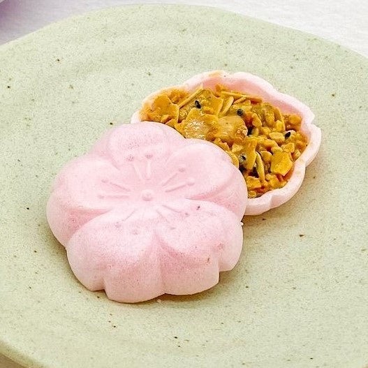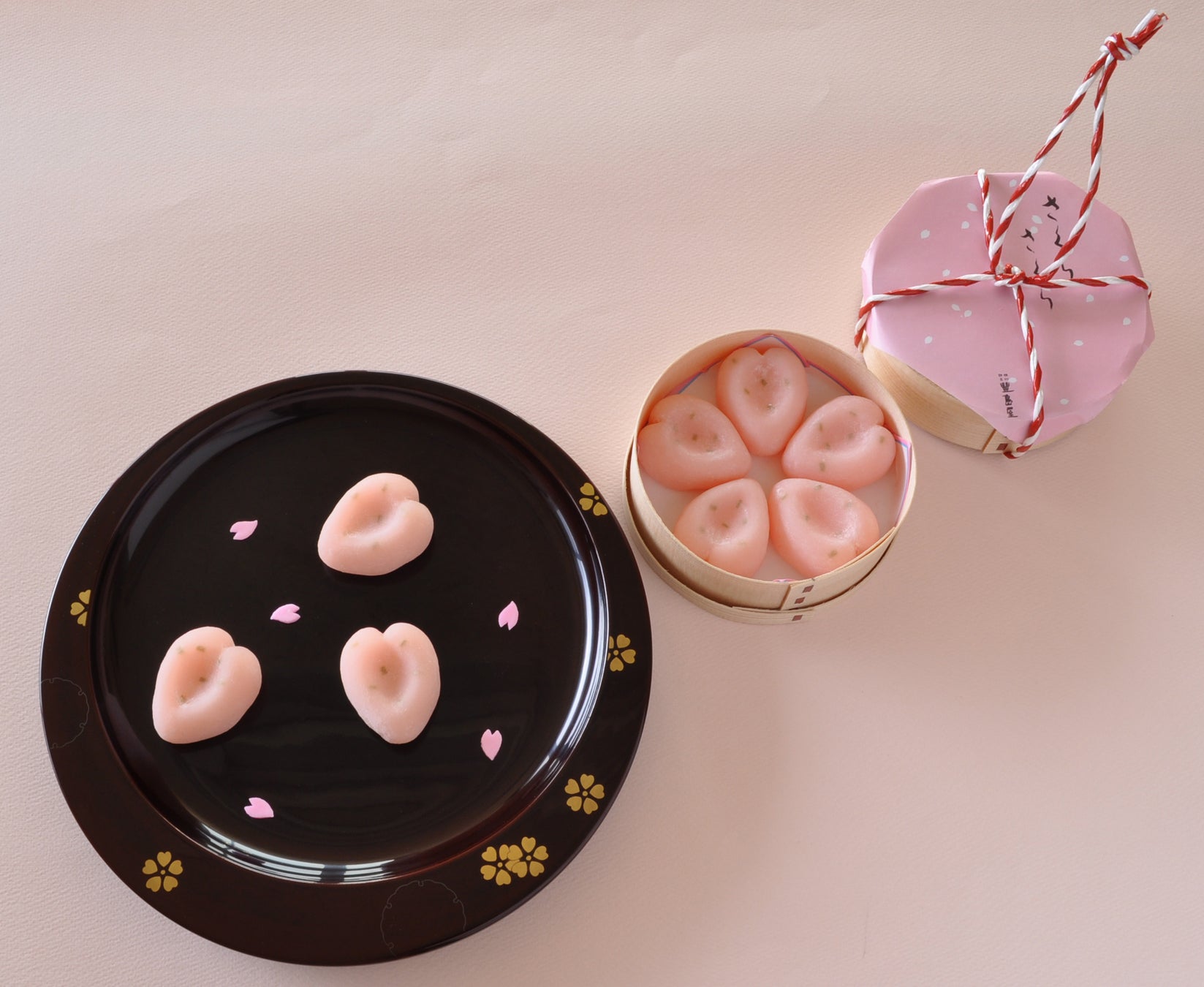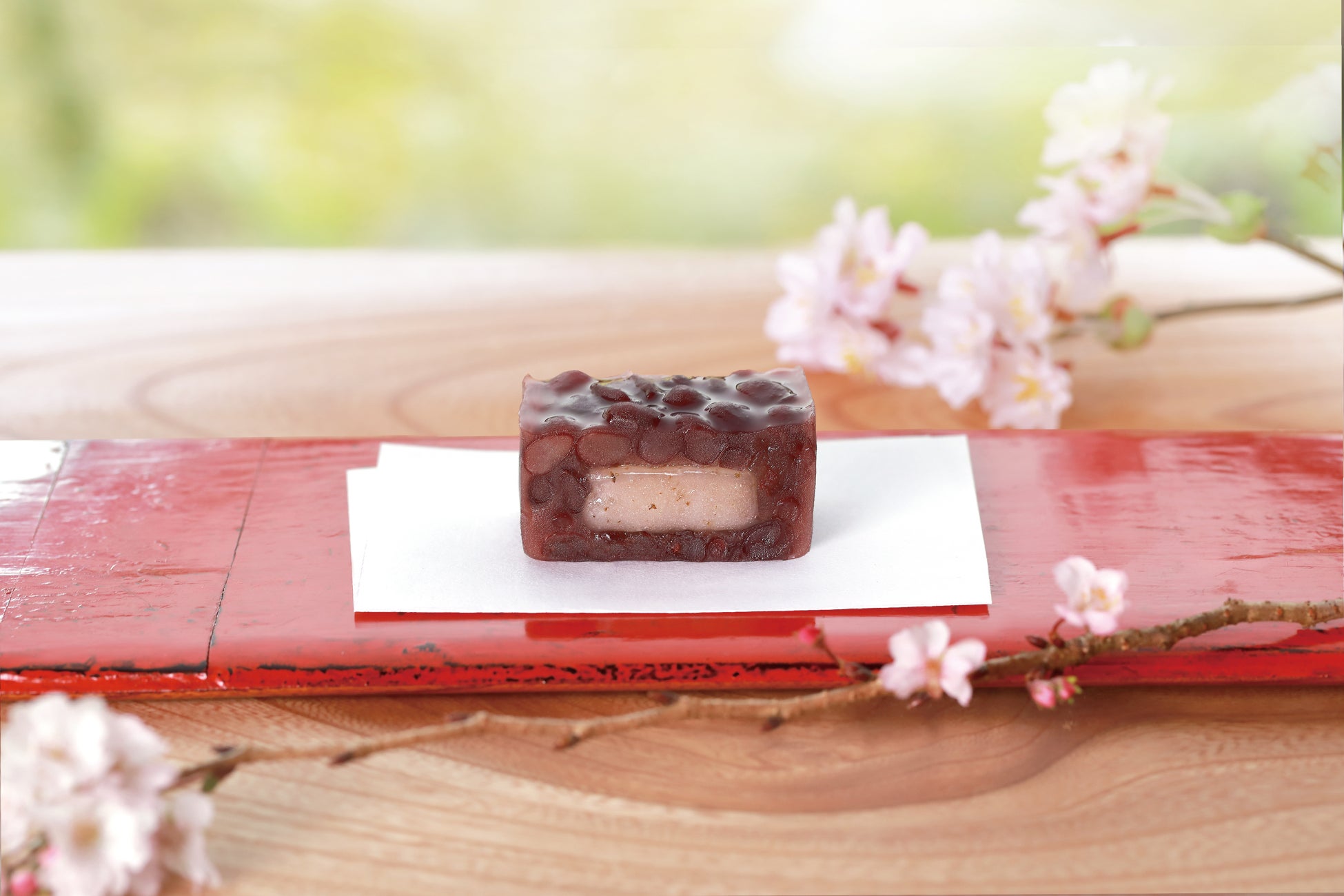 塩漬けにした桜の葉を紅餡に練り込み、羽二重求肥で包んだお菓子。柔らかな羽二重求肥と春を感じる桜の香りが大変評判でございます。