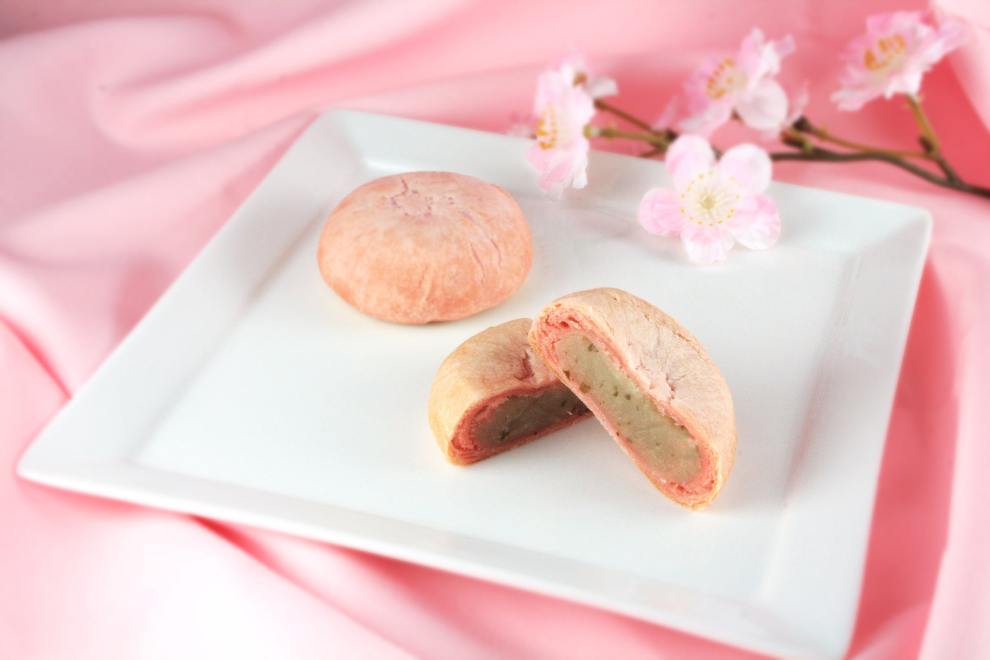 桜の風味豊かなあんを春らしい桜色のパイ生地に包みこんがりと焼き上げました。