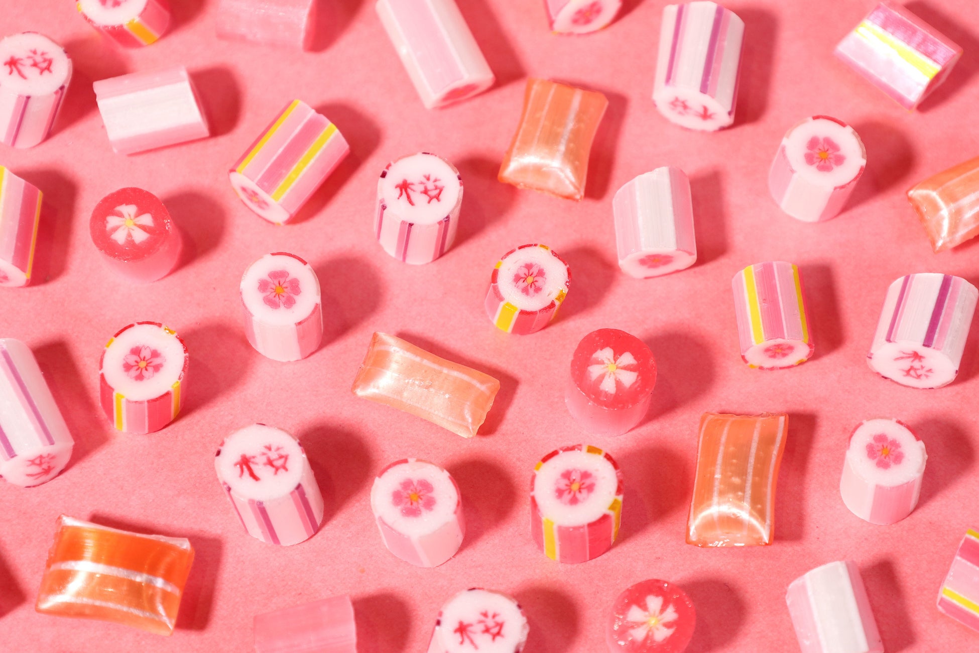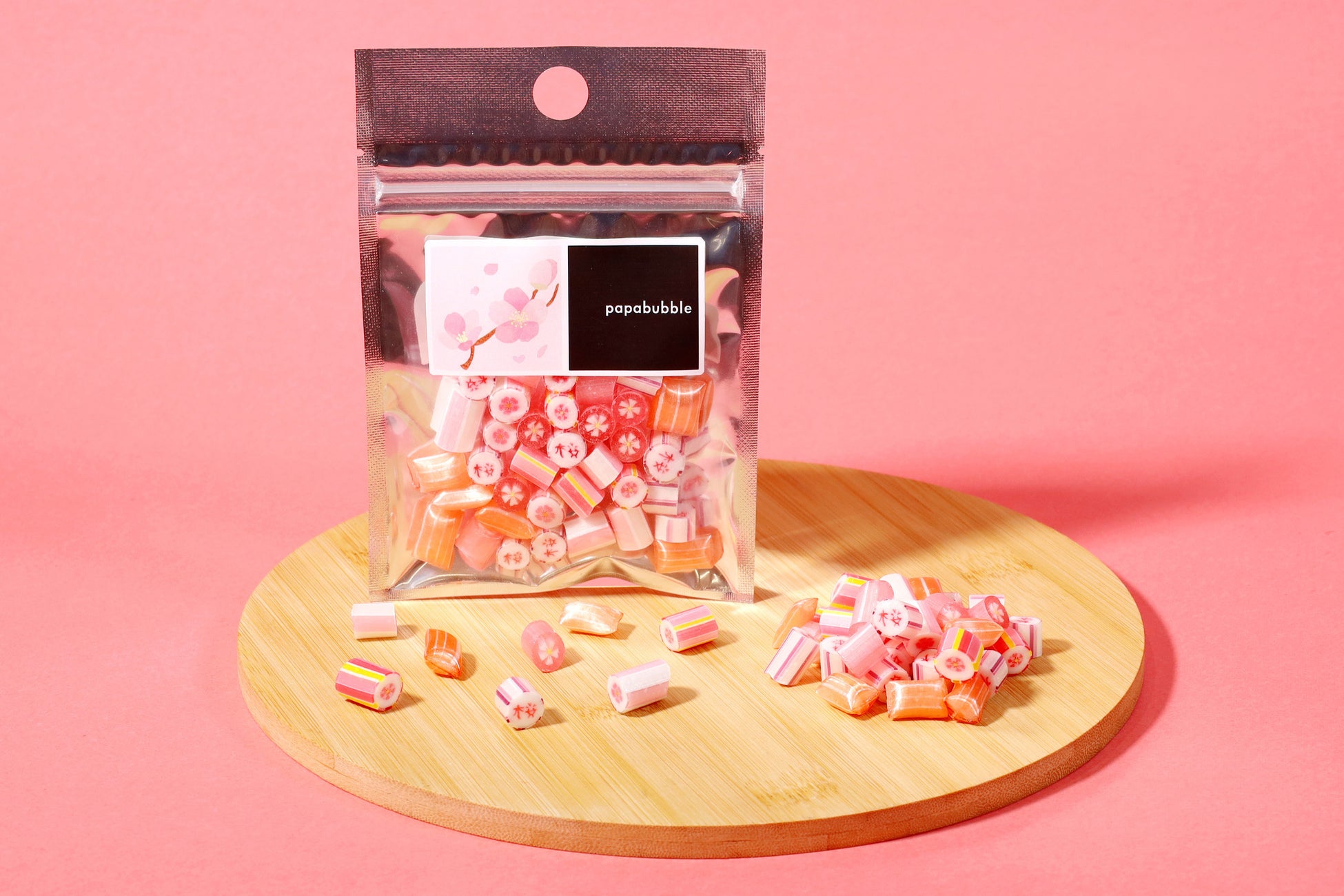 桜ハニー、桜ラテ、桜ピーチ、桜ベリー、佐藤錦の5種類の春を感じられるフレーバーをミックスした満開の桜のように華やかなキャンディ。お花見のお供にいかがでしょうか?