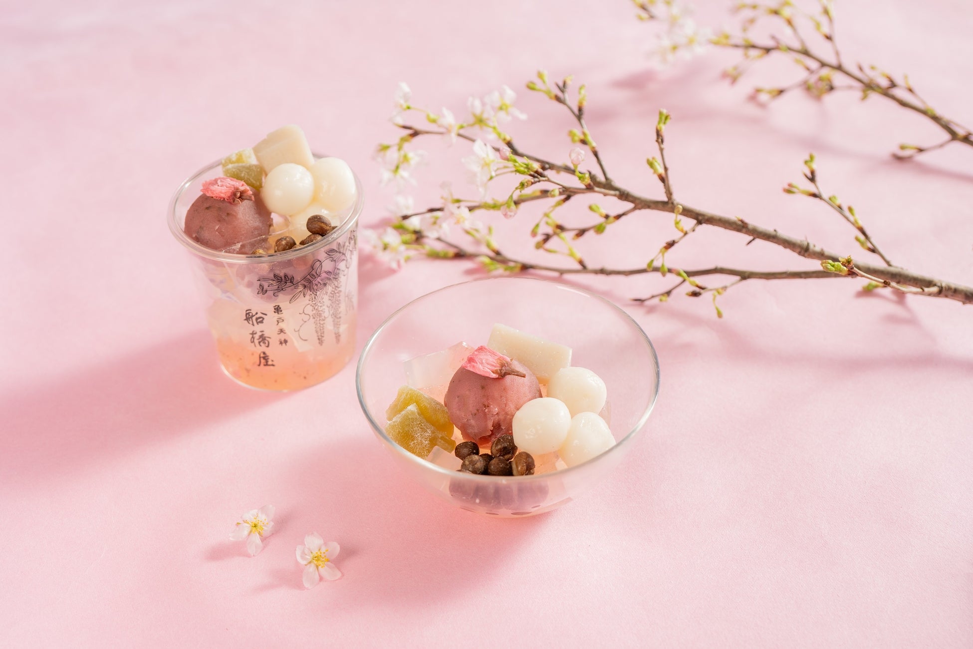 〈船橋屋〉桜白玉あんみつ(1個) 650円
