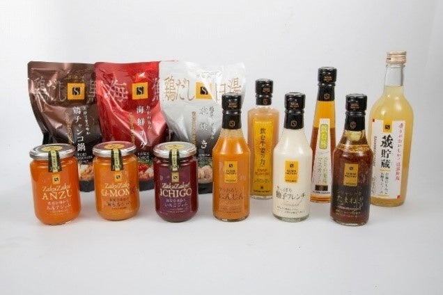 ●リッチスタイルドレッシング(にんじん・たまねぎ・柚子フレンチ)各240ml/●果実を味わうジャム(いちご315g、あんず320g、黄もも310g)/●鍋つゆ(水炊き・海鮮チゲ・鶏チャンコ鍋)各750g/●青森のりんご丸搾りジュース500g/●飲む酢マスカット200ml/●飲む生姜の力265ml