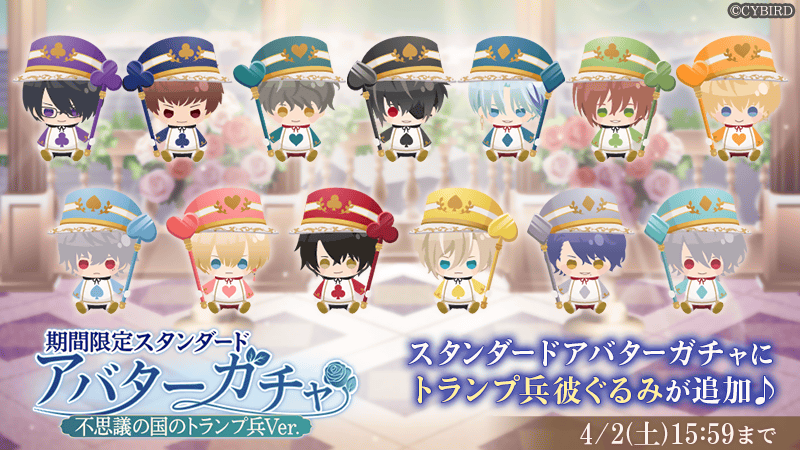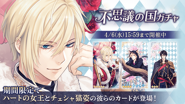 さらに、ハートの女王やチェシャ猫姿の王子のカードが獲得できる「不思議の国ガチャ」が開催予定です。