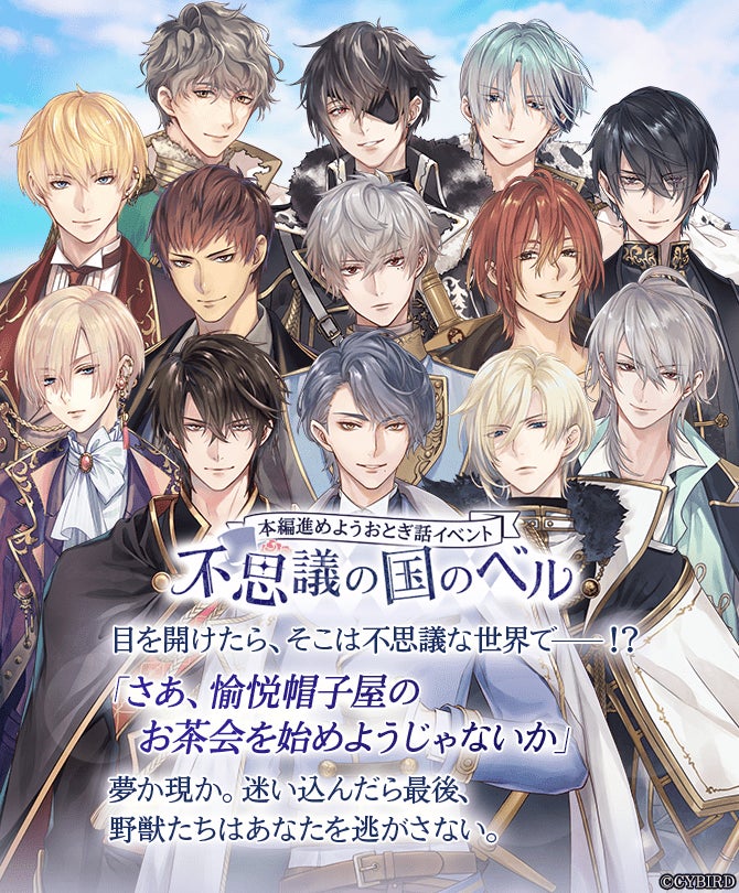 株式会社サイバード(本社:東京都渋谷区、代表取締役社長 兼 CEO 本島 匡、以下「サイバード」)が手掛ける、全世界でのシリーズ累計会員数3,500万人を誇る女性向け恋愛ゲーム「イケメンシリーズ」の人気タイトル『イケメン王子 美女と野獣の最後の恋』は、同シリーズの『イケメン革命◆アリスと恋の魔法』とのコラボ開催を記念して、おとぎ話イベント「不思議の国のベル」を2022年3月10日(木)より、開始します。