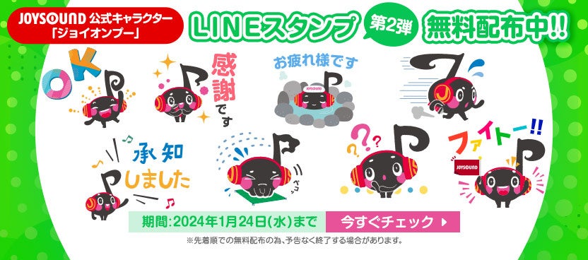 大好評につき、第2弾が登場!JOYSOUND公式キャラクター「ジョイオンプー」LINEスタンプを期間限定で無料配布!