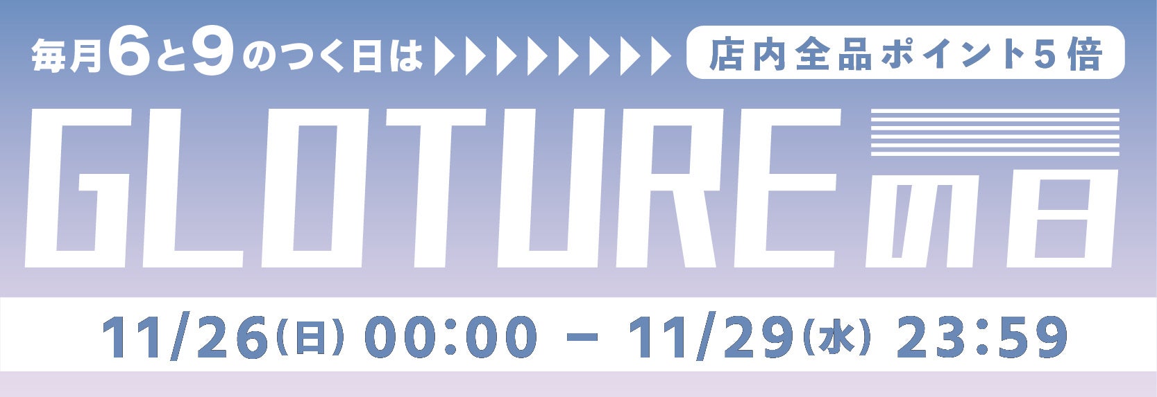 内容 | 【ポイント5倍】Glotureの日 × ポイントアップ キャンペーン実施中 |