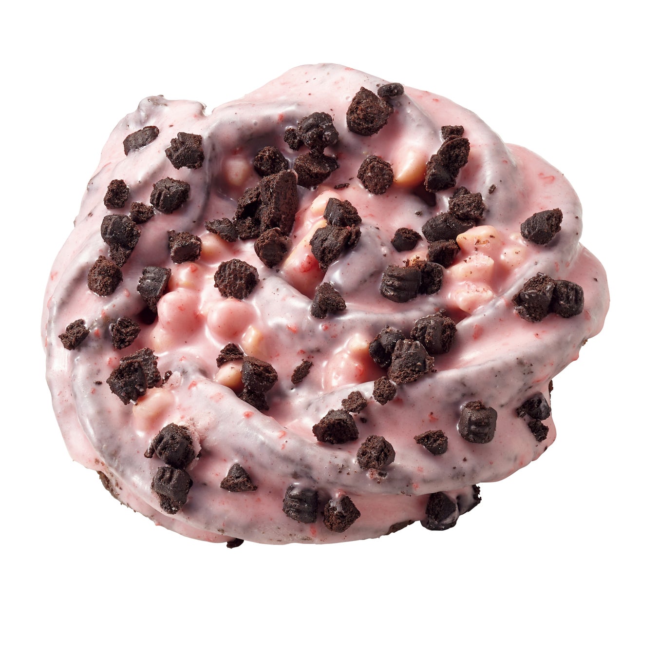 【内容】北海道牛乳を使用したザクザクとした食感のクッキードーナツに、バタービスケット、いちごチョココーティング、ココアビスケットをトッピングしました。