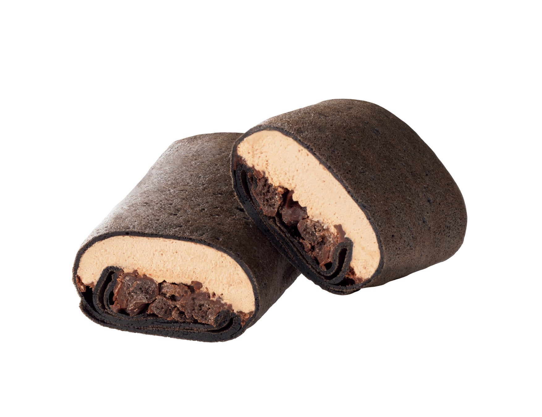 【内容】ブラックサンダーをイメージしたモナカアイスです。2種類のクッキーをチョコに混ぜ込みザクザク感を再現しました。アイスには、カカオマスとココアパウダーを配合し、チョコ感がしっかりと味わえる仕立てです。