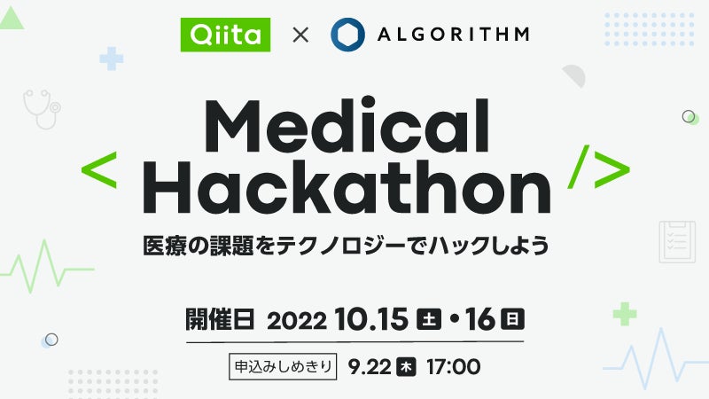 | タイトル | Qiita×Algorithm Medical Hackathon 医療の課題をテクノロジーでハックしよう |