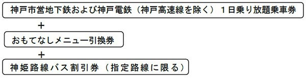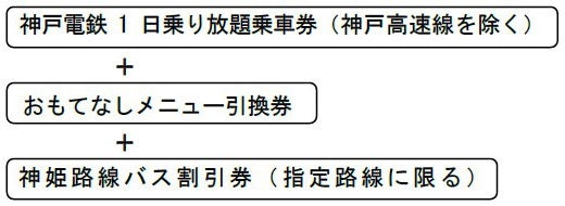 「おもてなしきっぷ」は、「神戸電鉄全線1日乗り放題の乗車券」と、神鉄沿線の飲食店や施設で利用できる「おもてなしメニュー引換券」「神姫路線バス割引券」がセットになったお得な企画乗車券です。