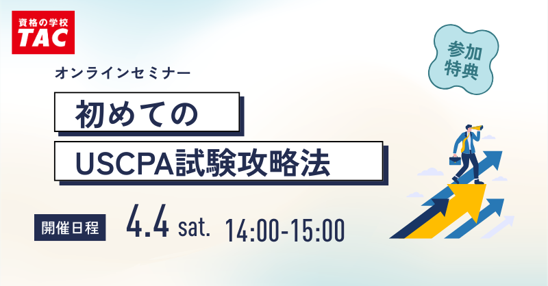 【資格の学校TAC】USCPA講座 オンラインセミナー「初めてのUSCPA試験攻略法」2026年4月4日(土)14:00開催!