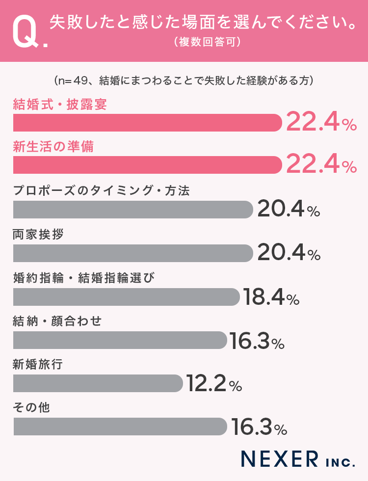 株式会社NEXER・結婚にまつわる失敗経験に関する調査