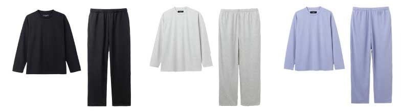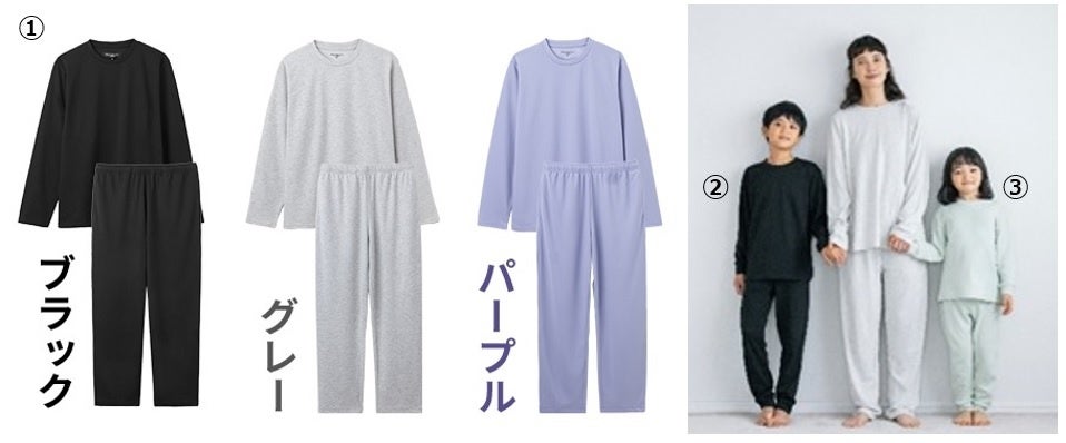 ①『Recoverypro Lab. 疲労回復ウェア⾧袖クルーネック・ロングパンツブラック/グレー/パープル』(上下セット)各サイズ:L・M ※ブラックのみXLサイズあり