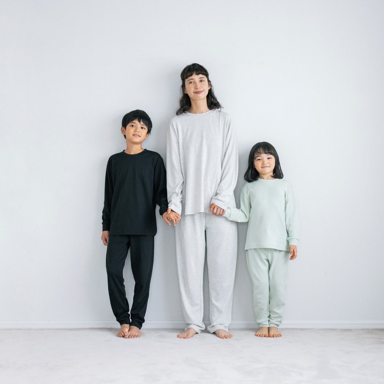 ②『Recoverypro Lab. KIDS 疲労回復ウェア⾧袖クルーネック・ロングパンツブラック』(上下セット)サイズ:140