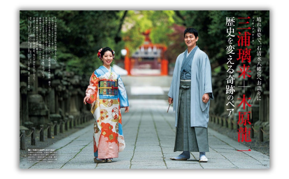 カップル競技の強化が長年の課題とされていた日本のフィギュアスケート界において、今や世界を牽引する立場にいるペア、三浦璃来選手&木原龍一選手。2026年2月に開催されるミラノ・コルティナ冬季五輪を目前に、練習拠点のカナダから一時帰国したお二人は、京都府八幡市の石清水八幡宮へお詣りに出かけました。ロングインタビューとともに本誌独占取材でお届けします。