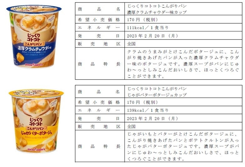 サッポロホールディングス(株)のグループ企業である、ポッカサッポロフード&ビバレッジ株式会社(代表取締役社長:時松浩、本社:愛知県名古屋市)は、「じっくりコトコトこんがりパン」シリーズを、2023年2月20(月)より全国でリニューアル発売します。