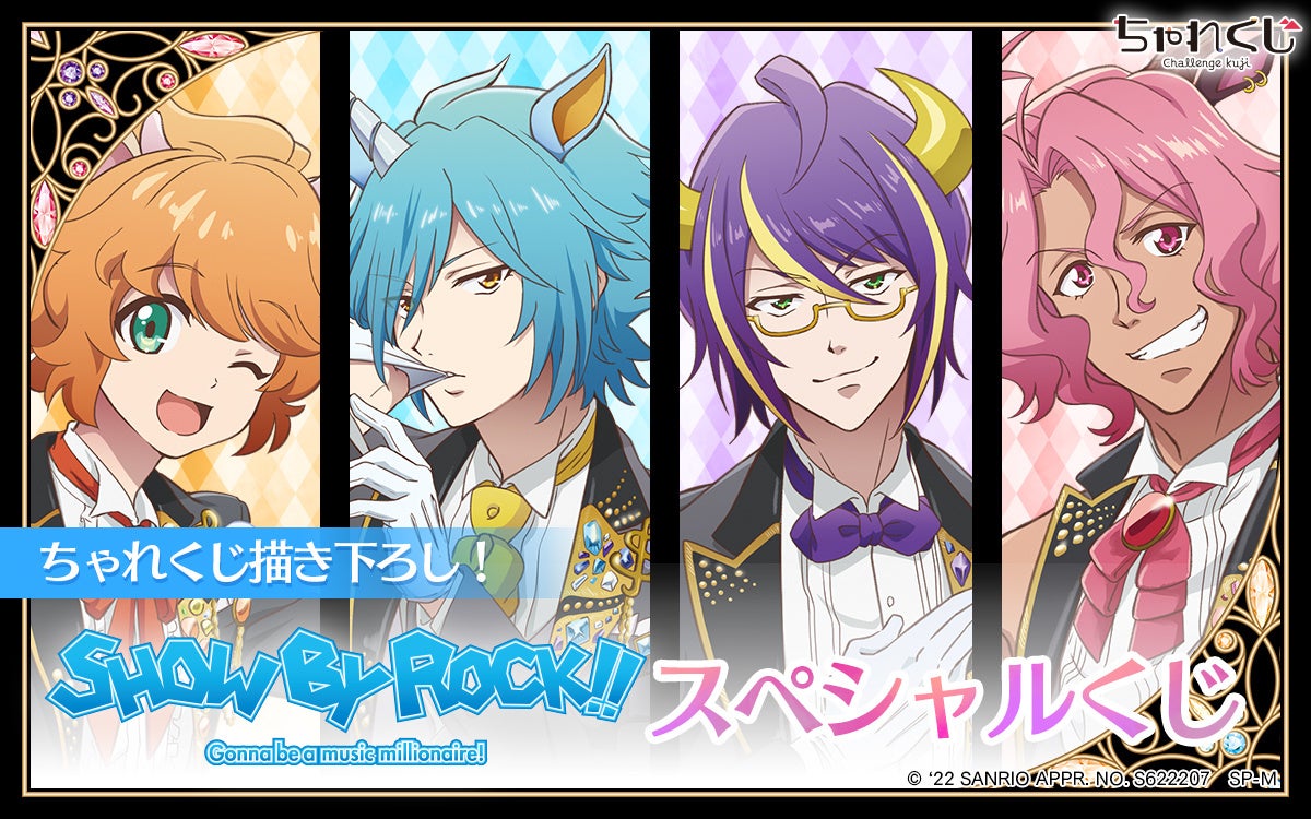 株式会社サイバード(本社:東京都渋谷区、代表取締役社長 兼 CEO 本島 匡、以下「サイバード」)の、オリジナル限定商品が当たる女性向けデジタルくじサービス「ちゃれくじ」は、株式会社サンリオ(本社:東京都品川区)によるキャラクタープロジェクト『SHOW BY ROCK!!』の、「ちゃれくじ」独占描き下ろしイラストを使用したグッズが多数ラインナップされた、「SHOW BY ROCK!! スペシャルくじ」を2022年4月7日(木) 〜 5月10日(火)の期間限定で販売します。
