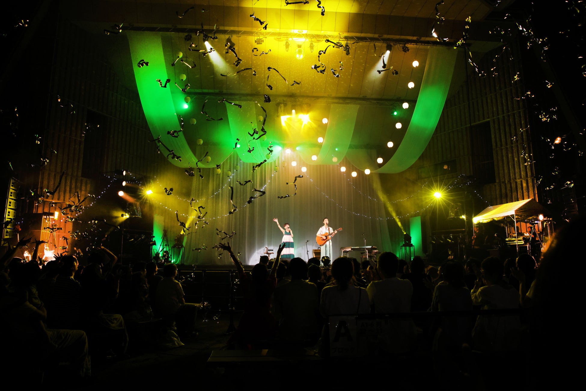 日が暮れるに従って変化していく空の色味と、虫の音色、自由に楽しむ子どもたちの声など、ステージを取り囲む全てが彼らの25周年をお祝いしたお祭り公演の模様をたっぷりお楽しみください!