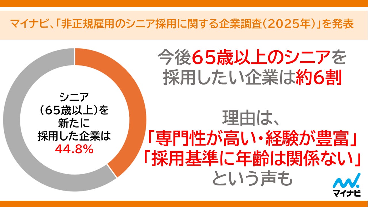 マイナビ、「非正規雇用のシニア採用に関する企業調査(2025年)」を発表