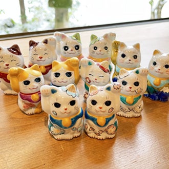 おすまし顔だけでなく、ときどきニッコリ笑っているコもいます。お気に入りの招き猫に出会えるかも!?