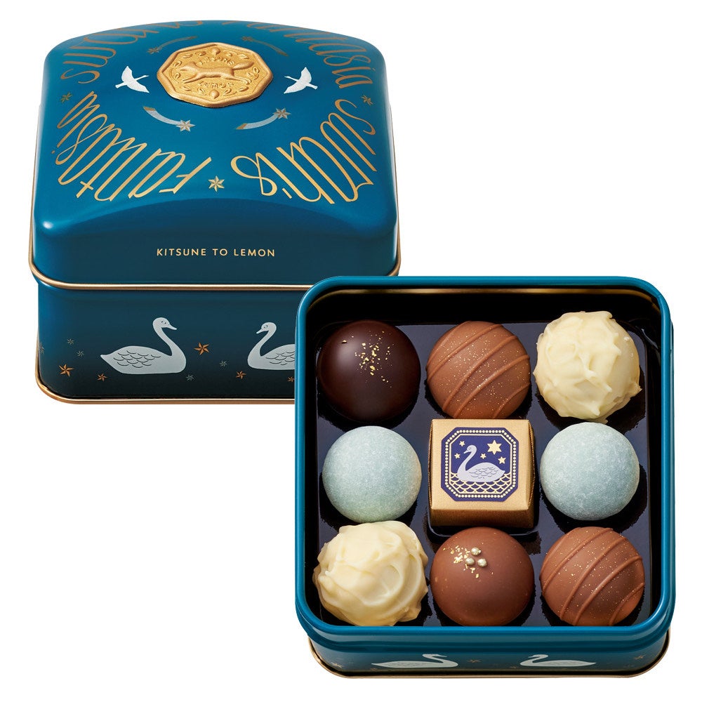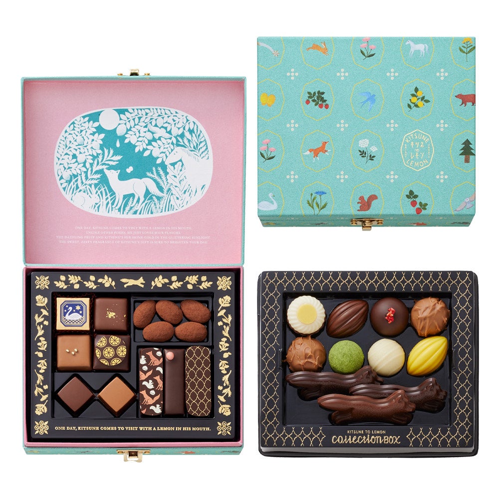 〈きつねとレモン〉➀レモンフラワー&イチゴフラワー 6個入 1,555円 ②白鳥のファンタジア 9個入 1,188円 ③コレクションボックス 25個入(2段詰) 3,024円/1階 MVPスイーツ