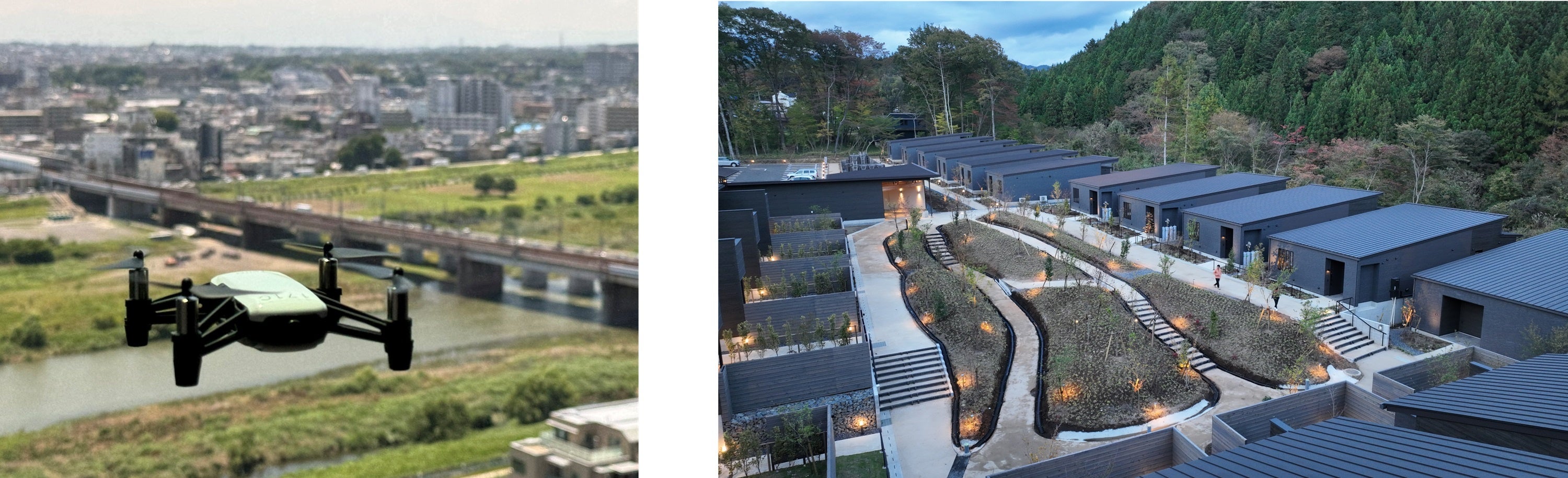 <ドローン操縦体験 イメージ画像> <バーチャルツアー体験コーナー イメージ画像>