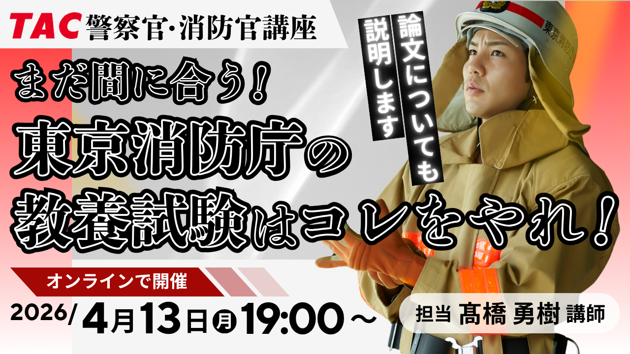 【TAC警察官・消防官(消防士)】「春割キャンペーンFirstで2027年合格目標コースが1.1万円引き!」(~4/30)