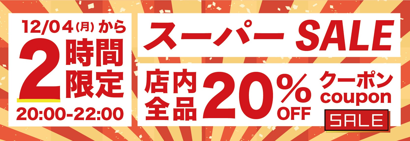 キャンペーン期間 | 【開始2時間限定全品20%OFFクーポン】 12/4 20:00~12/4 22:00 |