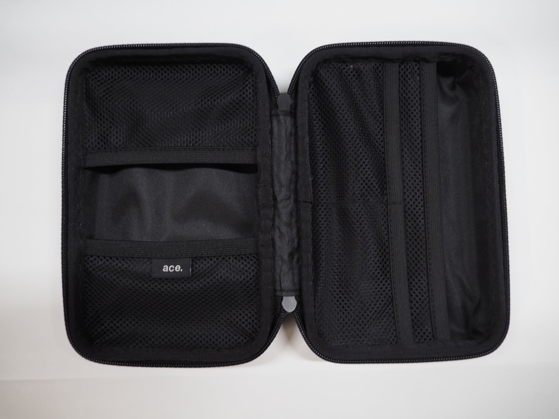 ガジェットやデバイスの収納に適した、スーツケースにも使用されるポリカーボネート製で耐衝撃性能に優れたハードポーチ。