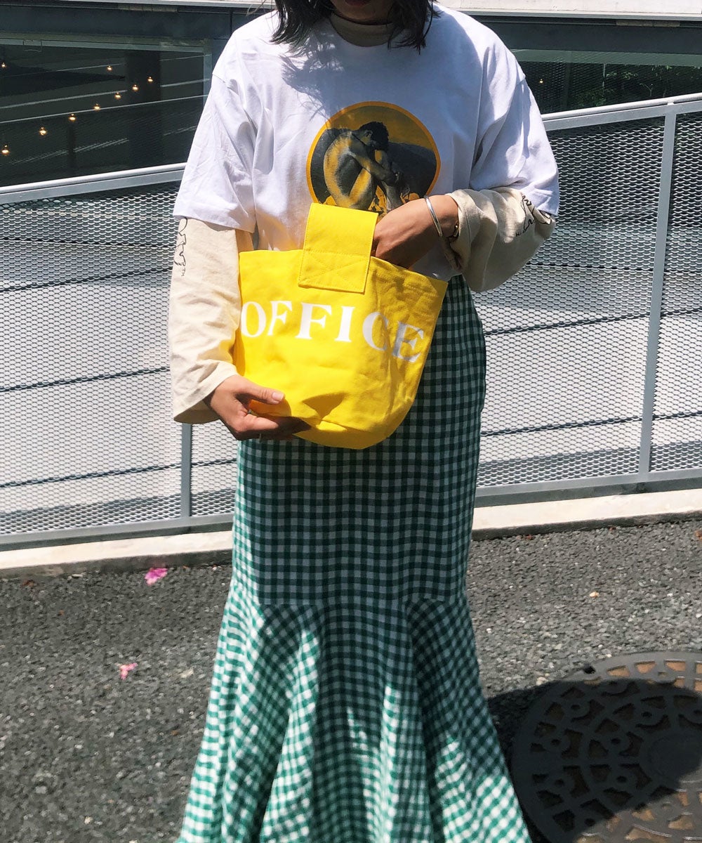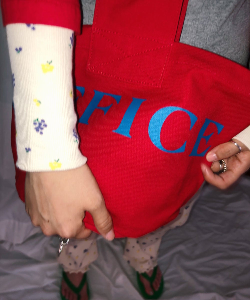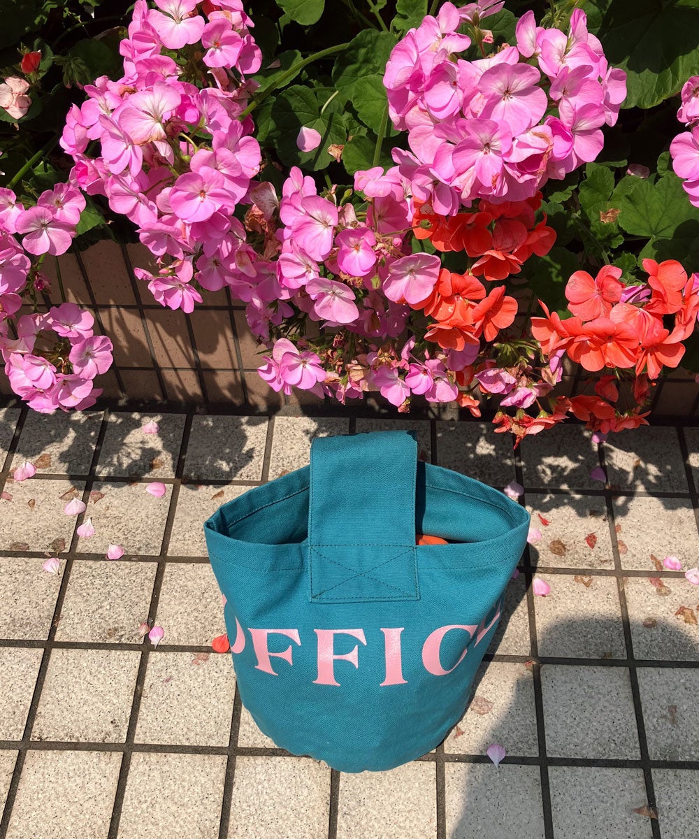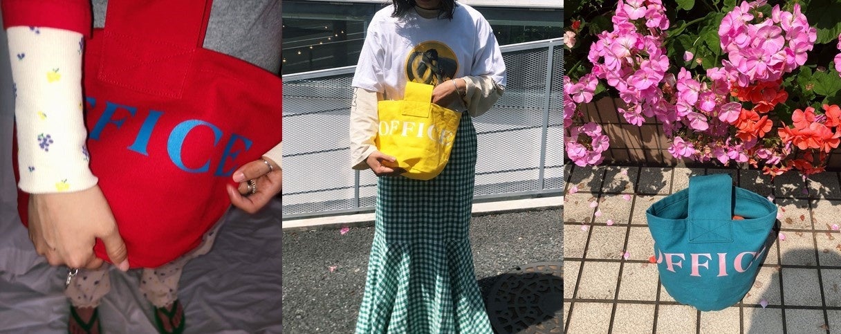 3色展開のOFFICEオリジナルバケツバッグはビッグサイズのロゴがポイント。コーディネートのワンポイントとして鮮やかな色で、存在感も〇。