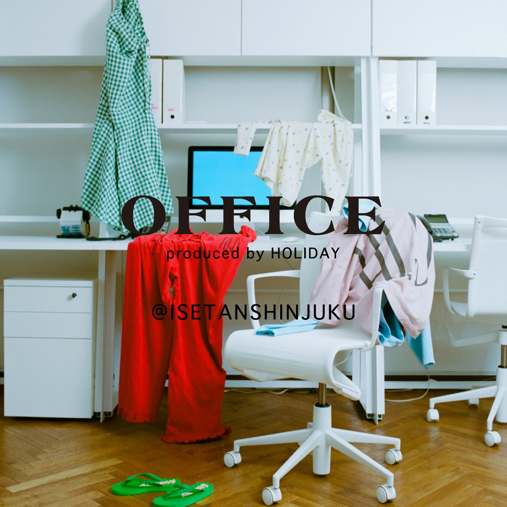 会場はまるで白を基調とした事務所の一部のような「OFFICE/オフィス」をイメージした装飾が施されるほか、同ブランドコレクションアイテムと合わせて着たい、セレクトブランドのアイテムも⼀部ご提案。会期中は<HOLIDAY/ホリデイ>スタッフも店頭にて接客を行うので、コーディネートの提案やスタイリングについてもまるで直営サロンにいるかのようにお買い物をお楽しみいただけます。一部アイテムは、三越伊勢丹オンラインストアでも販売いたします。