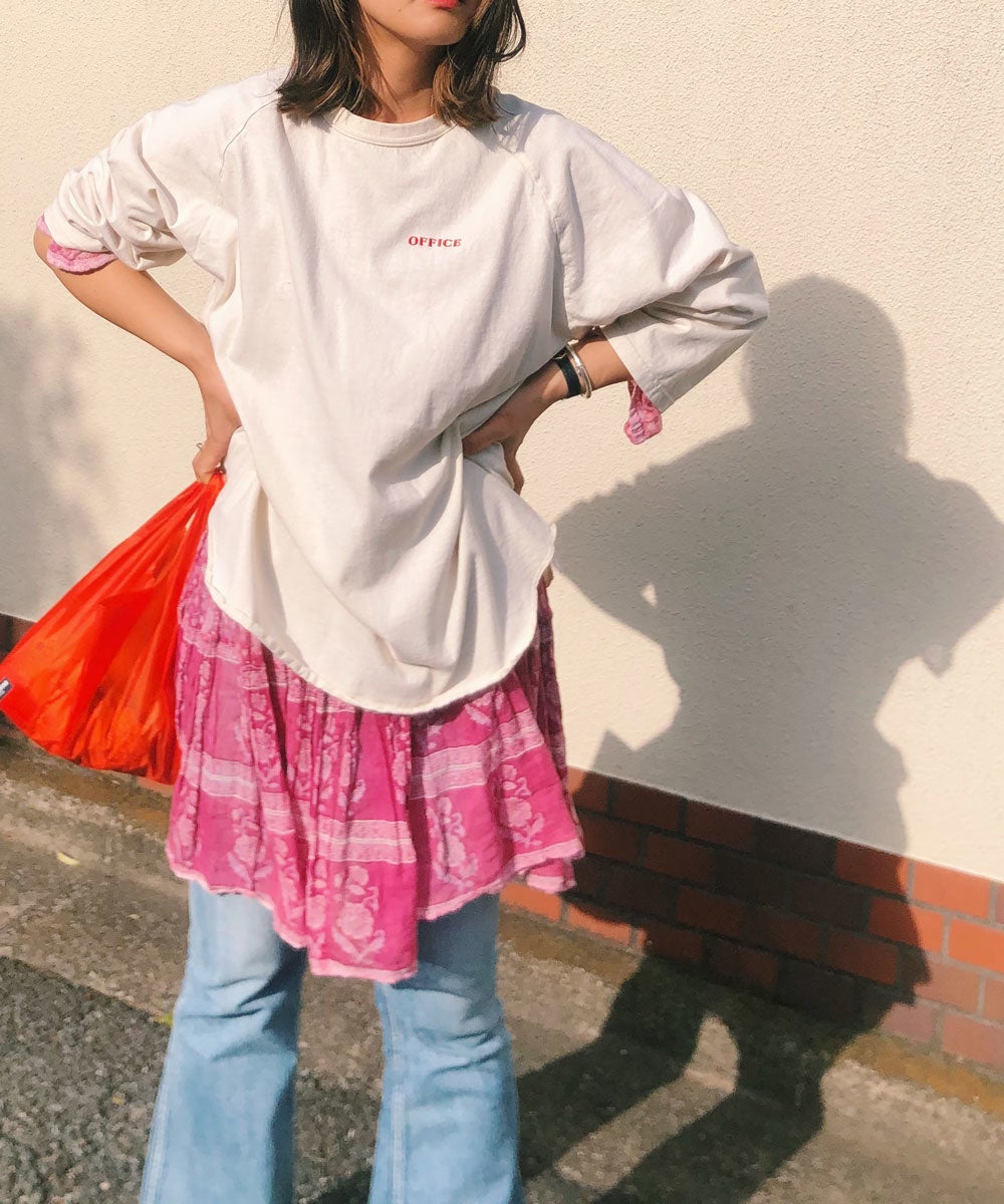 OFFICEオリジナルのBASEBALL Tシャツ。オーバーシルエットで、スカートでもパンツにも合わせやすい、この時期にさらりと着こなすことのできるアイテム。USAメイドのタフな素材が魅力的。