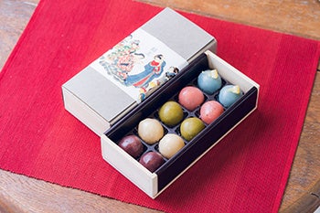 あんを知り尽くした大正時代創業「石田製餡所」のお店。チョコやチーズなど洋の素材と掛け合わせた多彩な餡スイーツを販売しており、餡の魅力をポップに楽しめるのが魅力。餡玉は、ラムネあん、桜あん、抹茶あん、りんごあん、朱鞠小豆のこしあんを寒天でコーティングしたもの。秋は芋や栗、かぼちゃを使ったあんこが登場する。