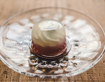 水まんじゅうの生地で包み込んだレアチーズが美しい大分で誕生したネオ和菓子。2層からなる生地は、ぶどうの香りがほのかに漂うこだわりもあり、キュートな見た目でしっかりと濃厚な味わいです。透ける部分に入った絞りのクリームチーズなど、一つ一つ職人の手作りで生みだされる独特な製法にも注目。