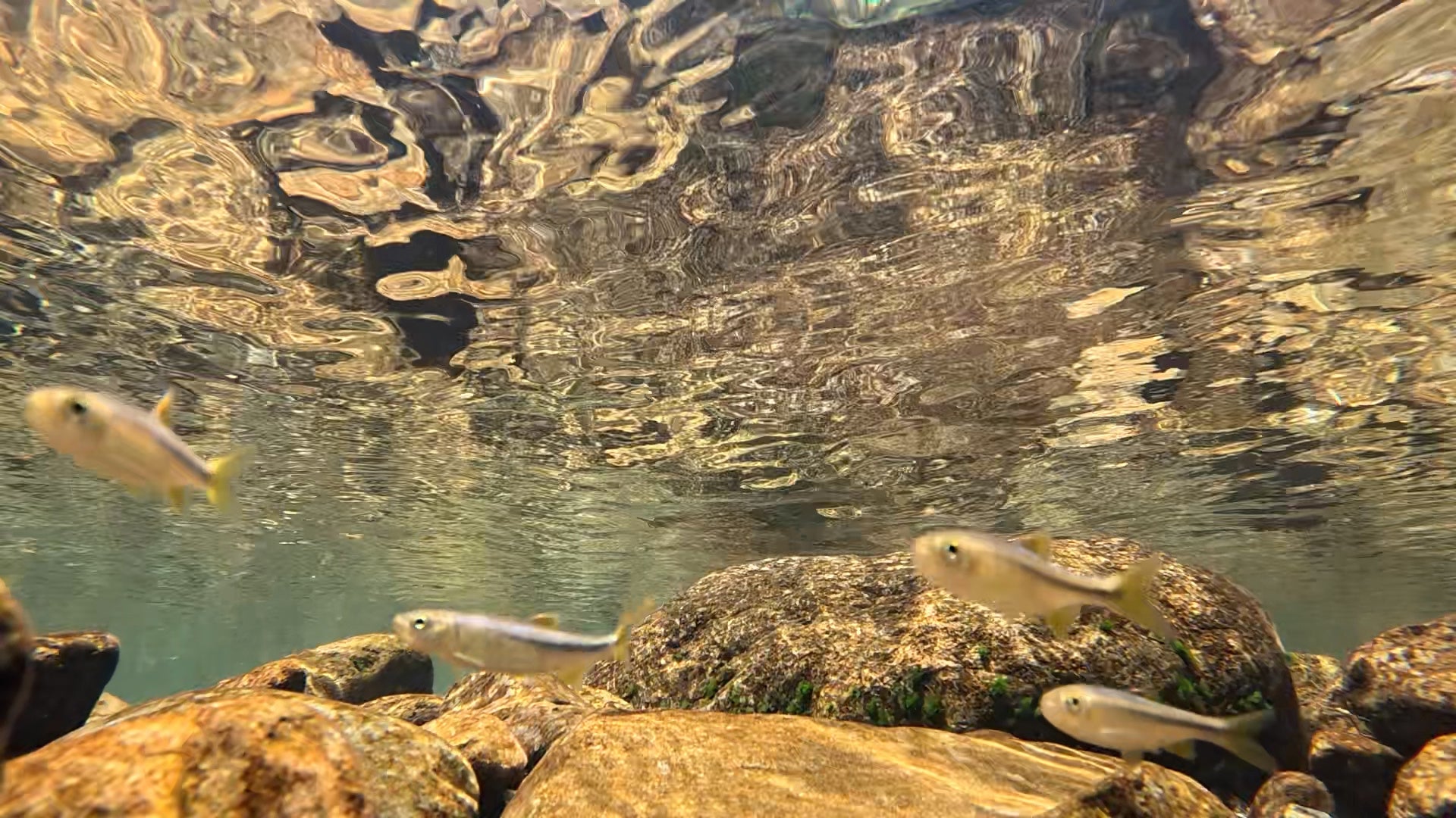 アユ釣りではまずアユが好む黒い色をした石が多い場所を探す。