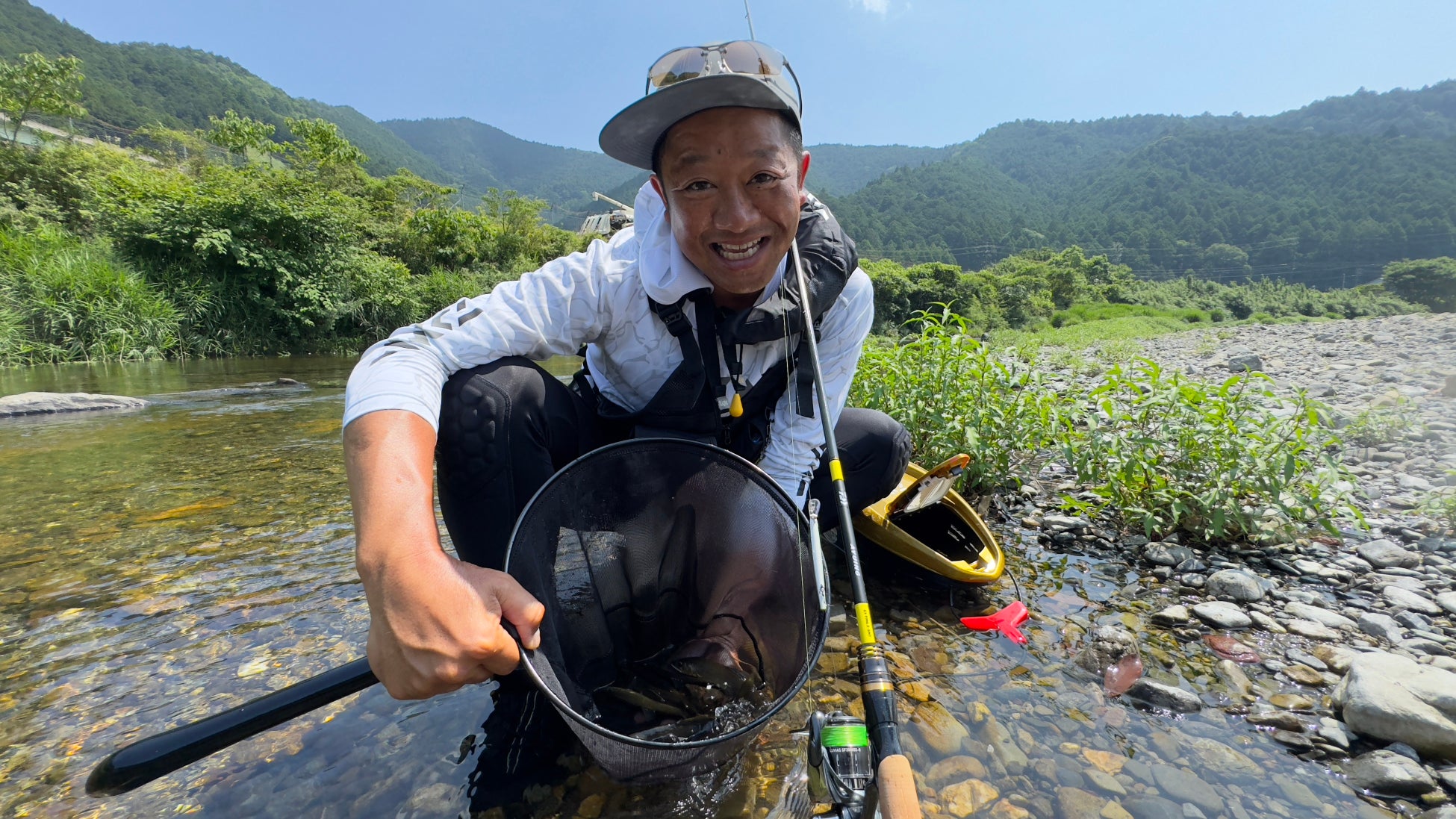 今回のアングラーは、アユイングの第一人者、木森直樹。エギングのエキスパートでもある木森は、ルアーの知識を活かして、全国の川でアユイングを研究中。