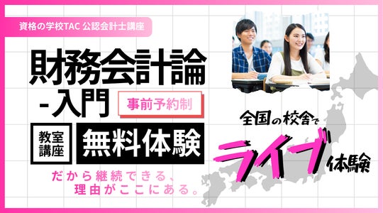 【TAC公認会計士】全国の校舎、教室ライブ体験「財務会計論 入門講義(簿記3級相当)」が2026年4月、続々開講。無料体験できます。