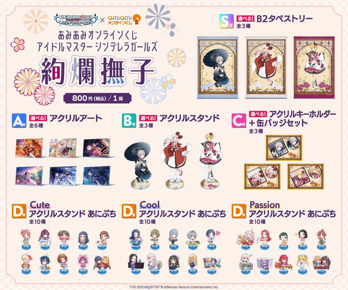 大網株式会社(本社・東京都文京区)より、『あみあみオンラインくじ アイドルマスター シンデレラガールズ 絢爛撫子』が登場いたします。