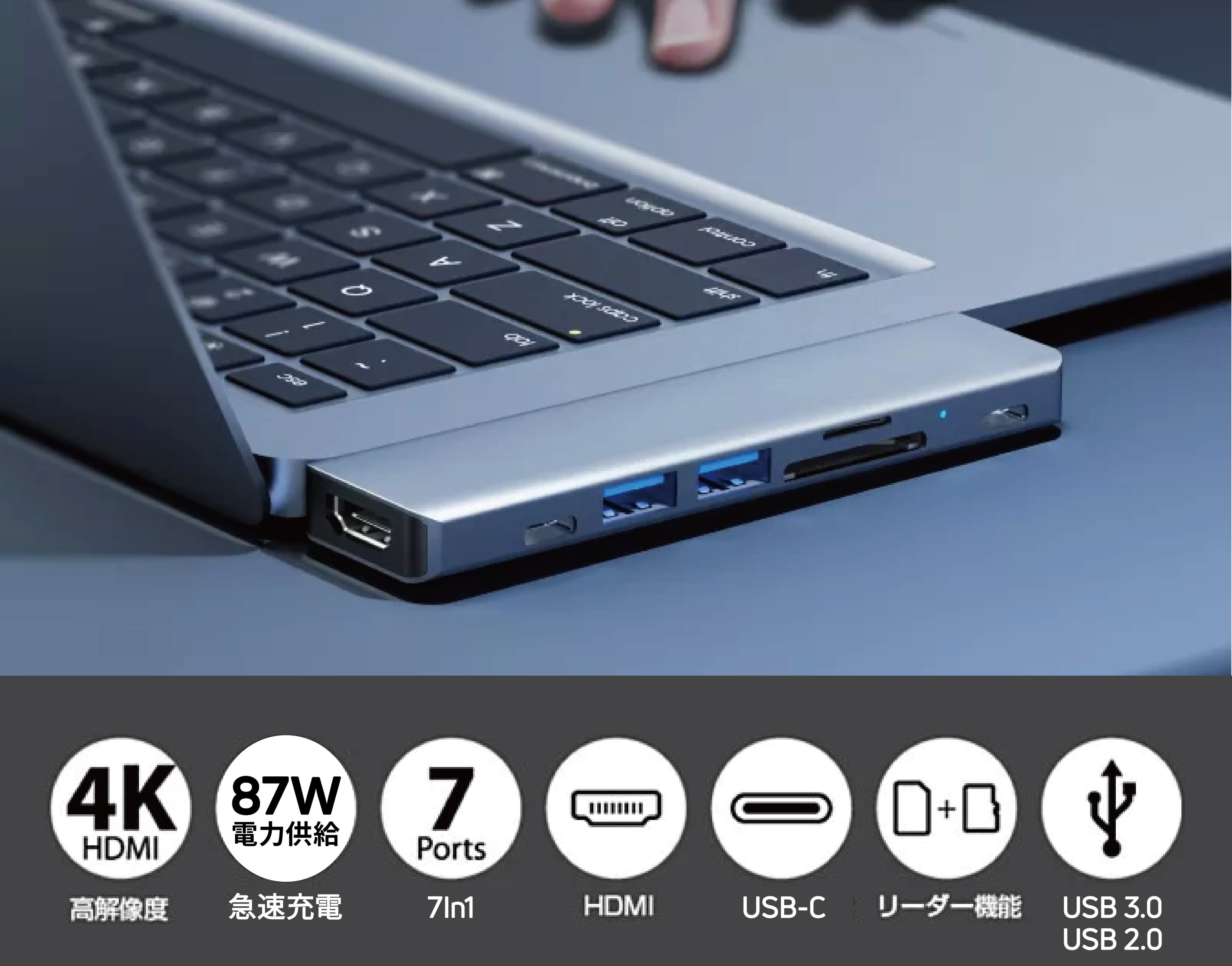 以下の7種類、合計7個のポートが一つにまとまっています。