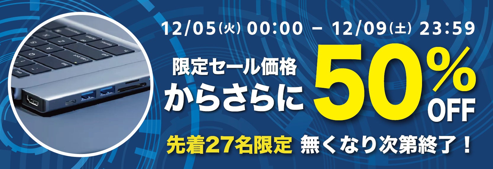 条件・期間 | 先着27名様 12/5(火)00:00 ~ 12/09(土)23:59 |